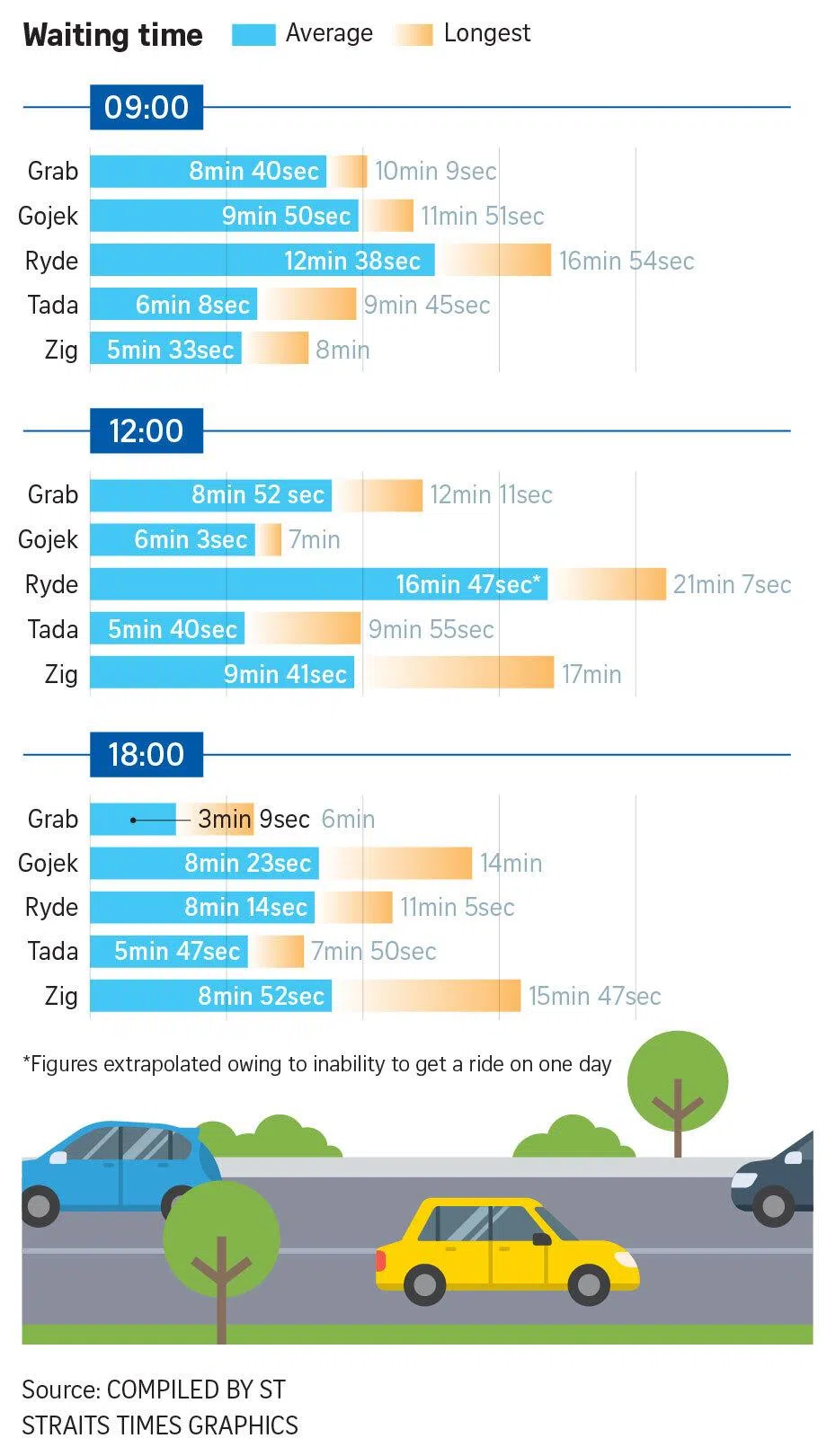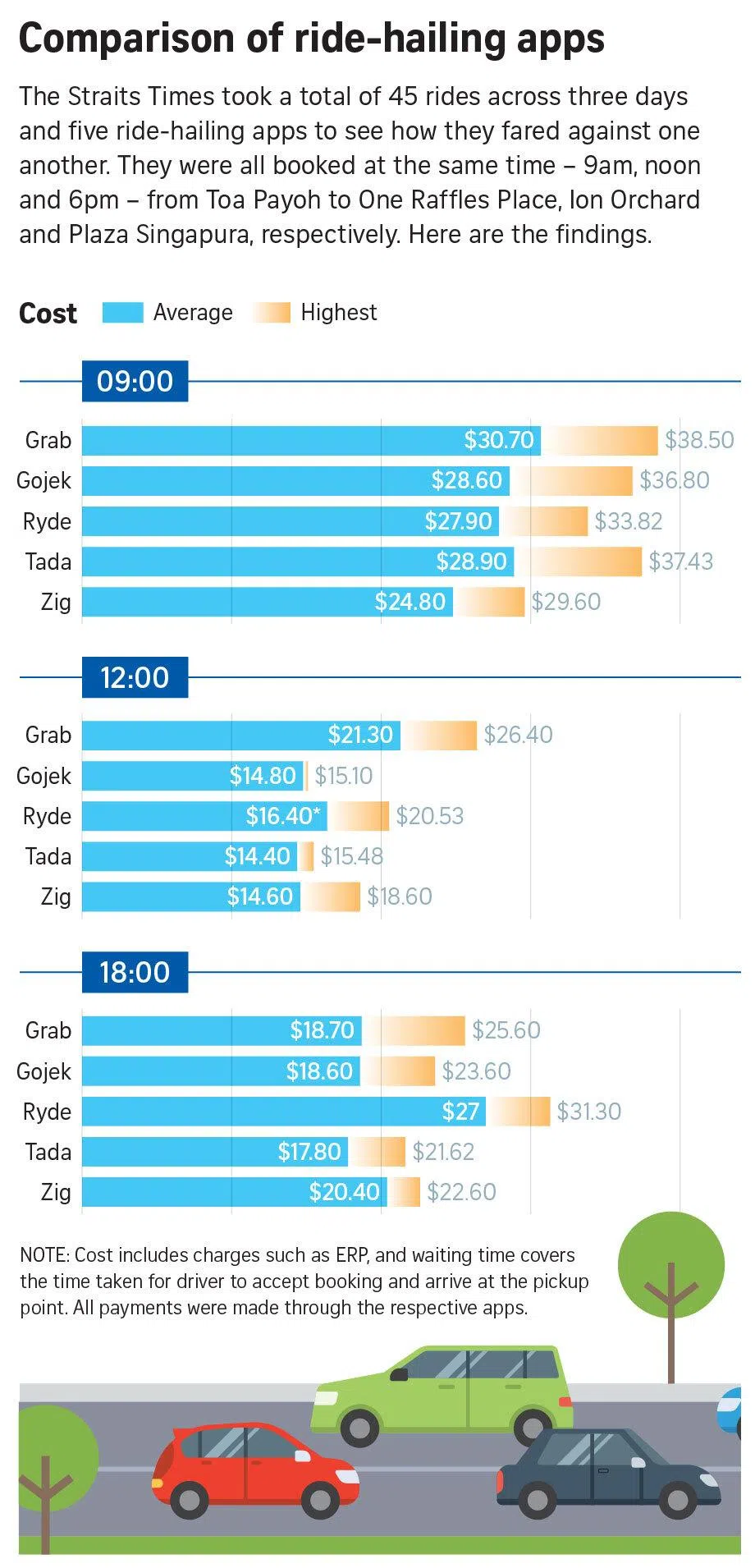- The Straits Times found Grab tended to be the most expensive ride-hailing platform, while Ryde had the longest wait times.