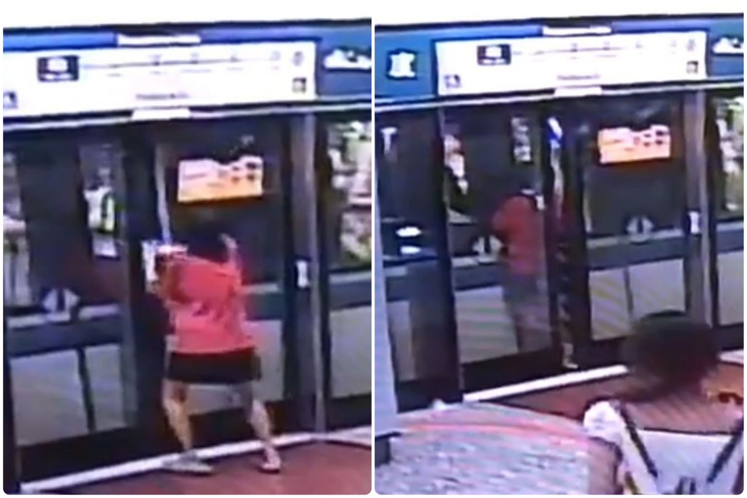 A video of the incident posted online shows the woman prise the platform doors open. She gets past them and the doors close behind her. The woman then attempts to open the closed train doors.