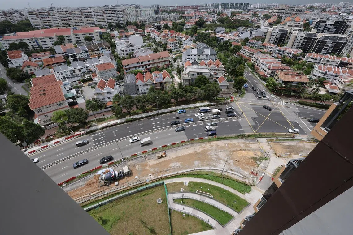 Checks by The Straits Times last week found that a stretch of about 20m of Bidadari Park Drive leading to Bartley Road has been excavated to reduce its elevation.