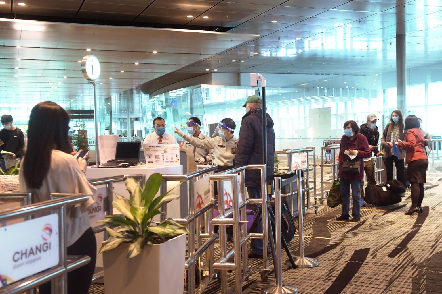 Passengers being directed to the Transit Holding Area at Changi Airport Terminal 3 on June 23, 2020.