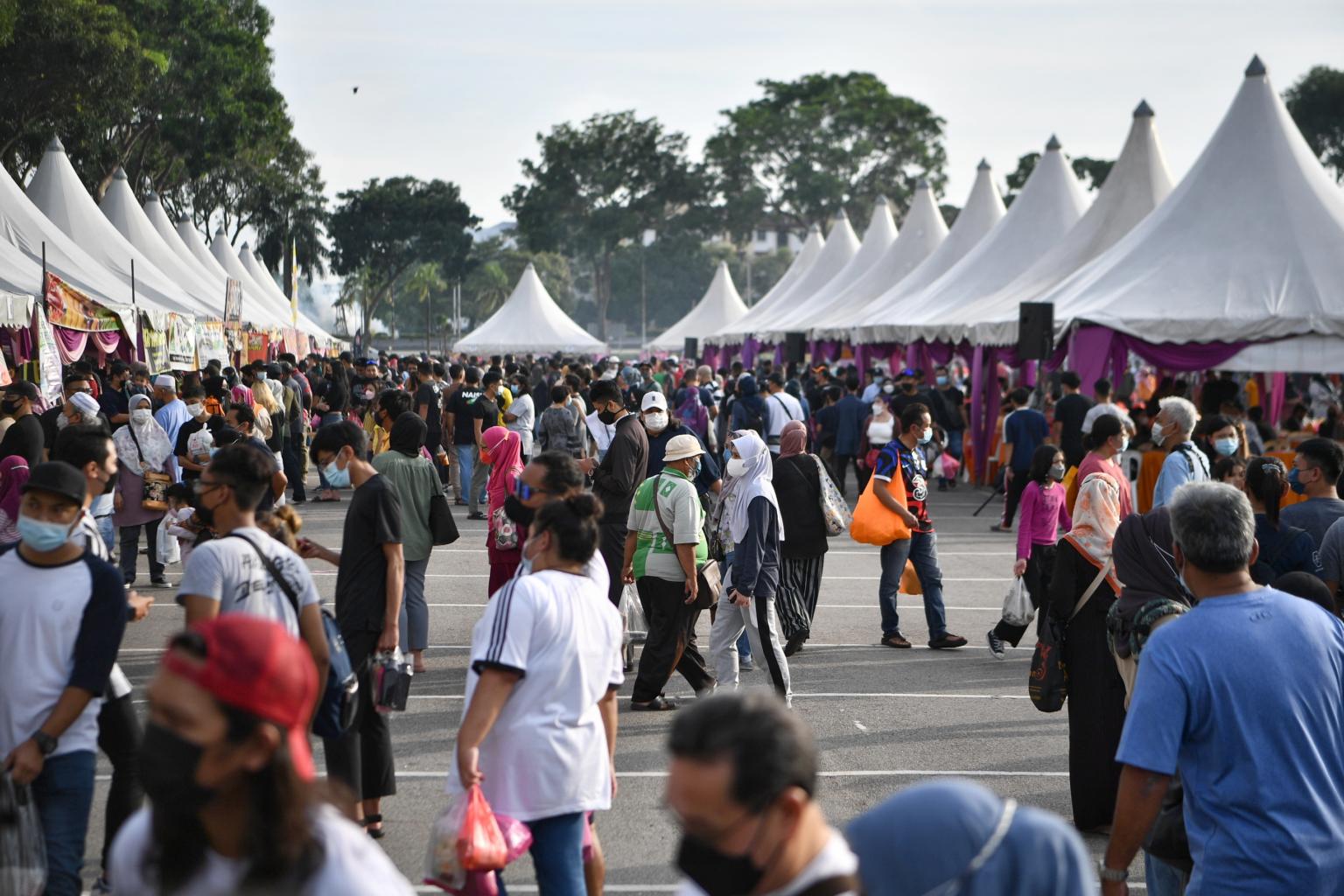Crowds at the Ramadan Bazaar next to Plaza Angsana mall on April 15, 2022.