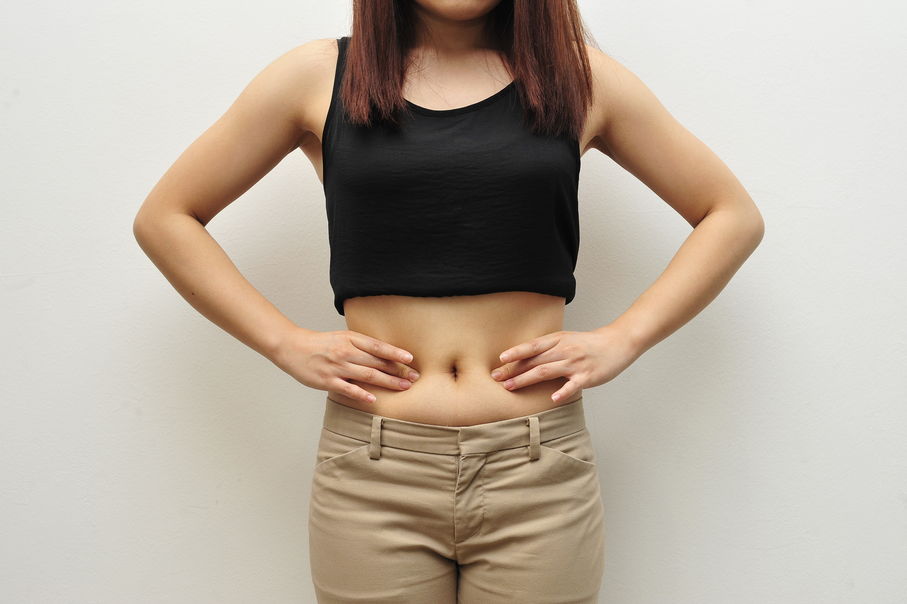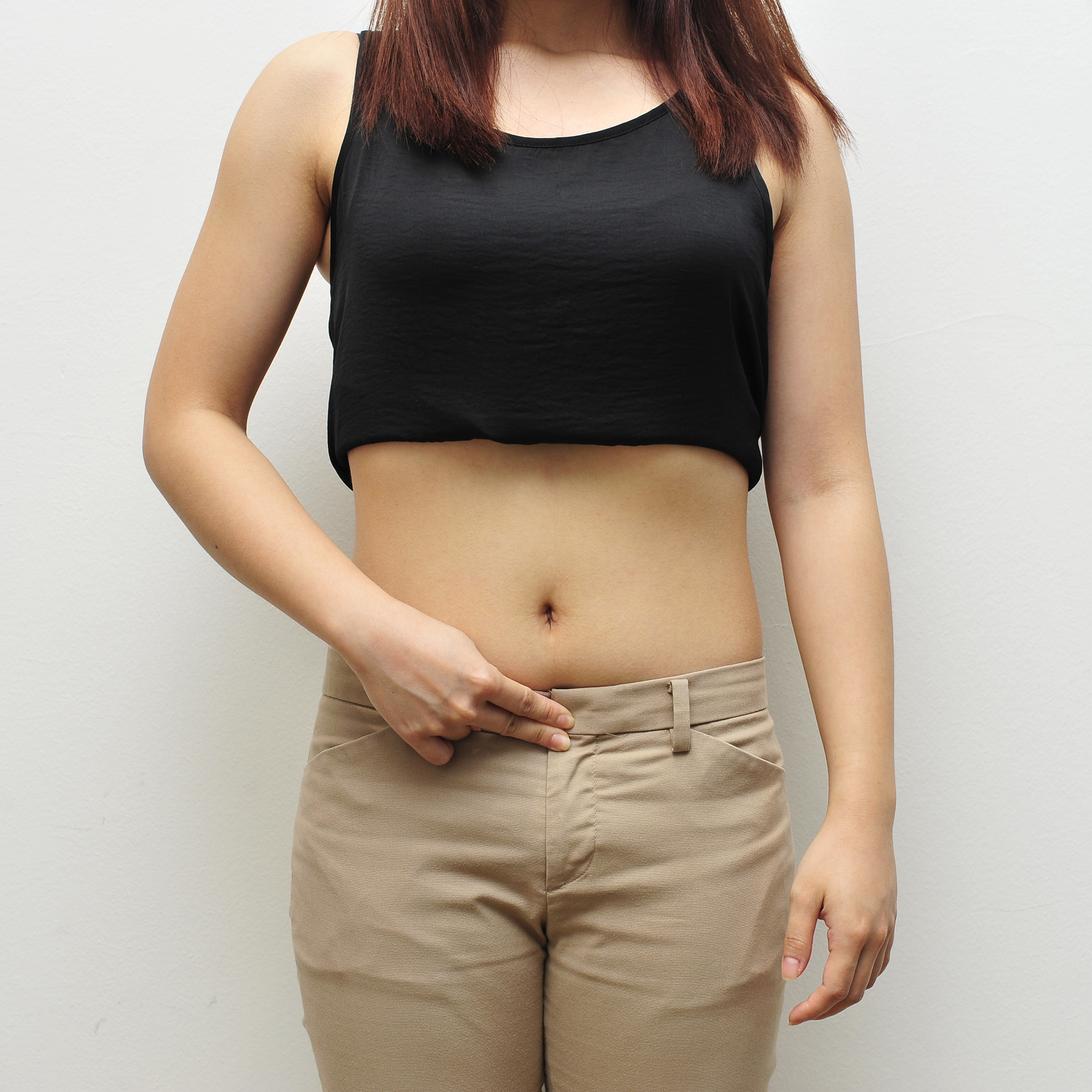 Place a palm below the belly button.