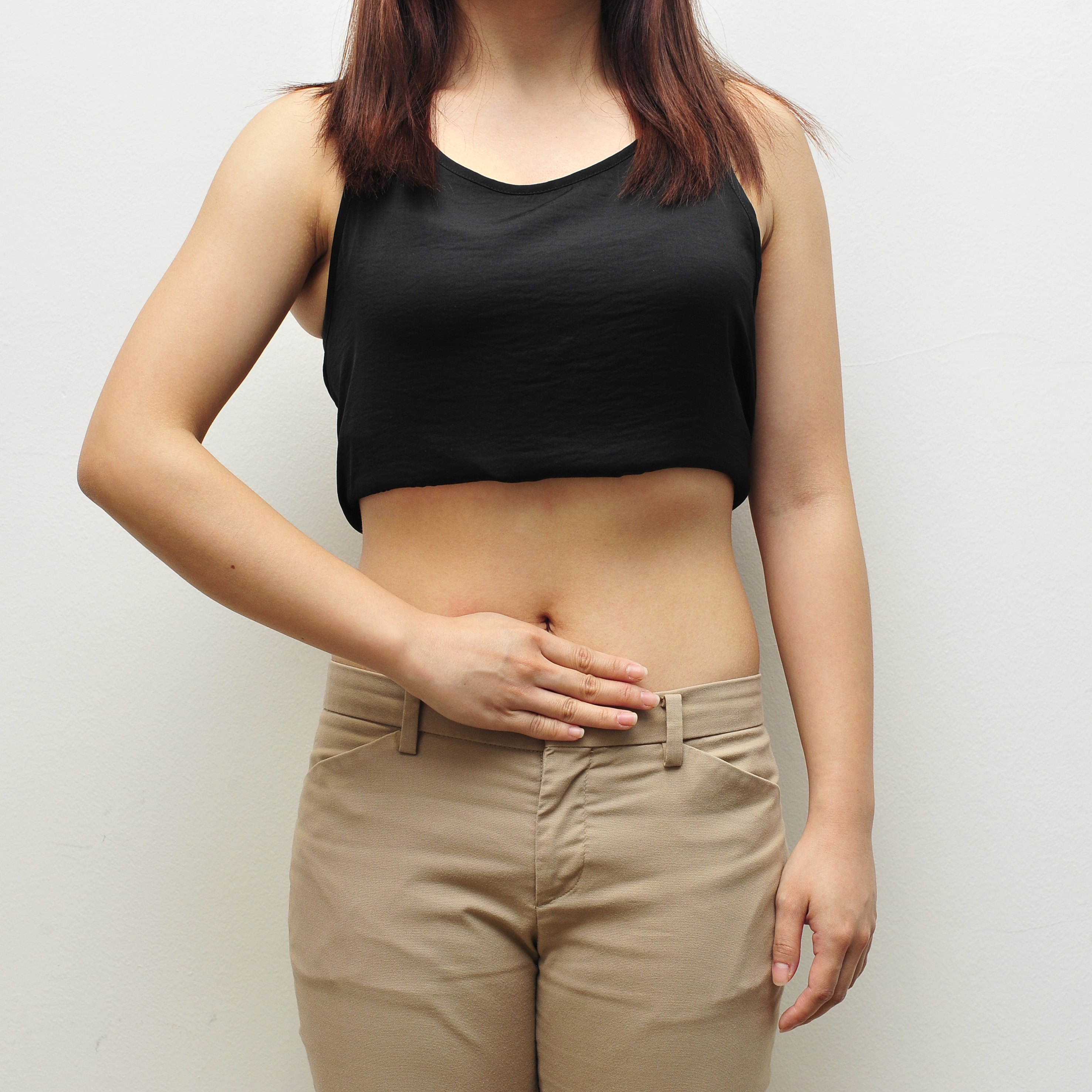 Place your right palm above the belly button.