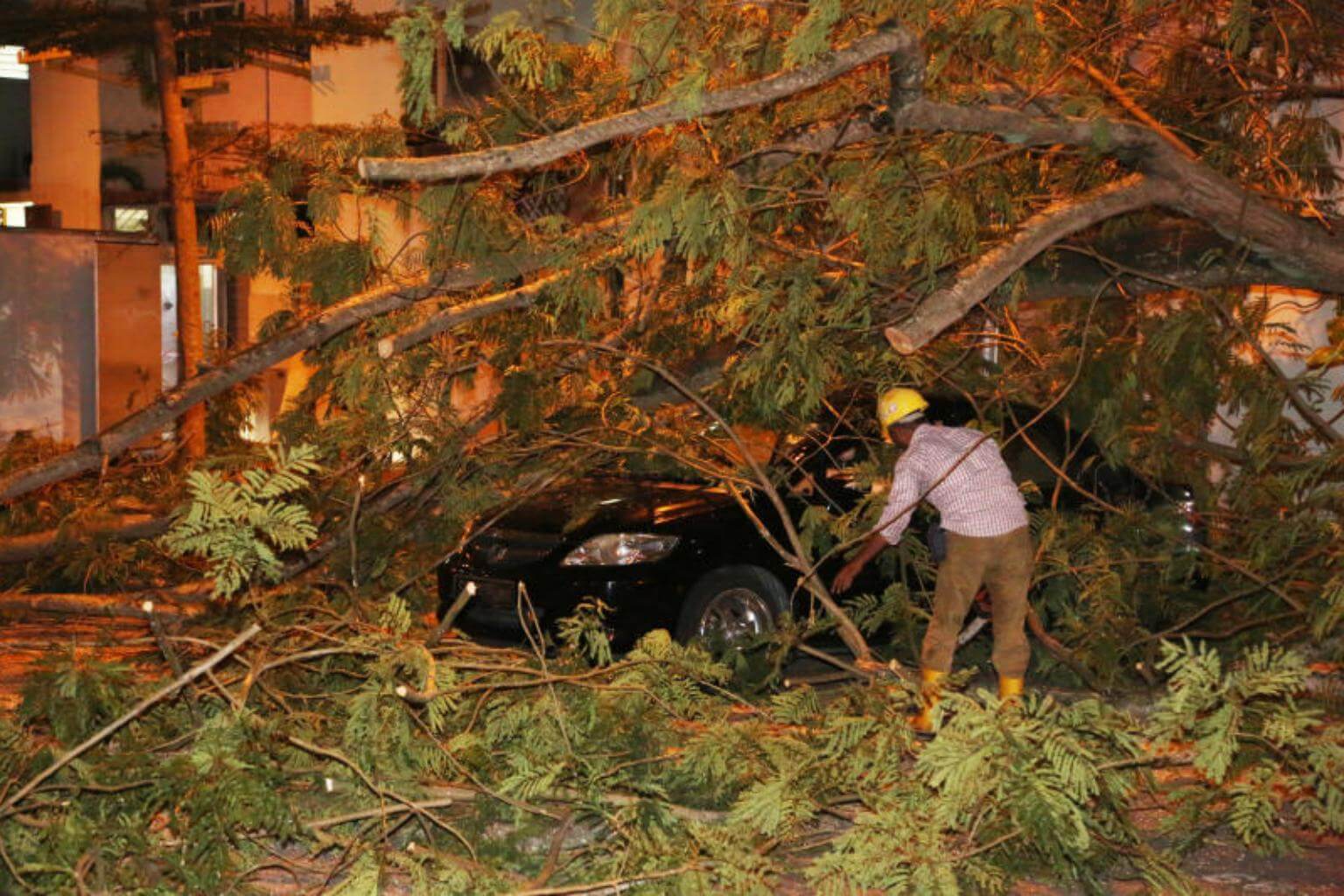 "Thankfully, the branch did not land directly on my car hood, or I would not have escaped unscathed," the driver added.