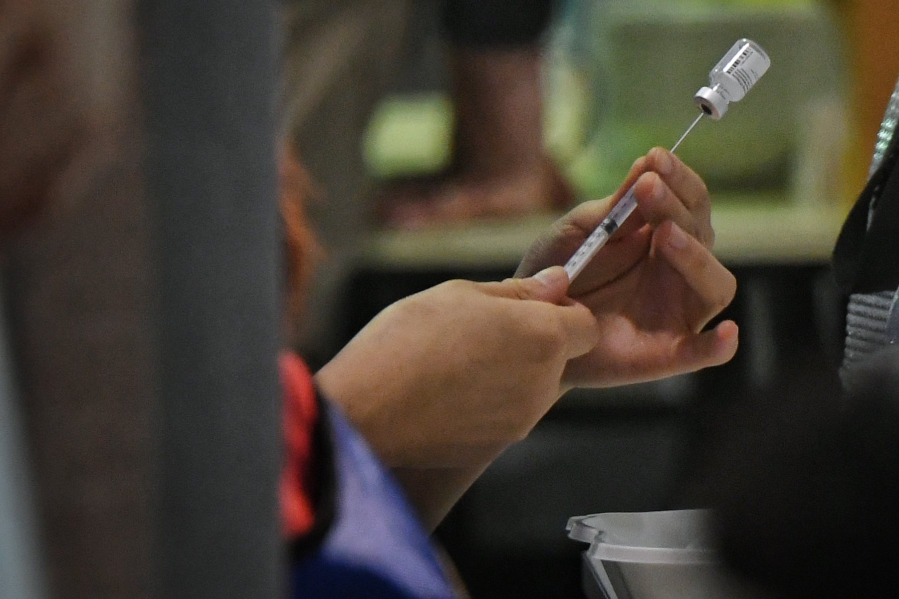 A health worker preparing a Covid-19 vaccine shot at Tanjong Pagar Community Club, on June 3, 2021.