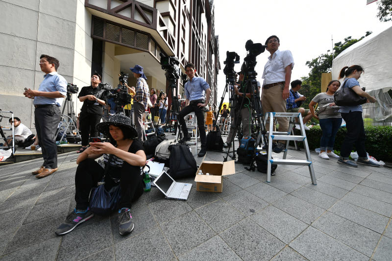 Media personnel outside Tanglin Place, opposite the St Regis where North Korean leader Kim Jong Un and his delegation are staying, on June 11, 2018.
