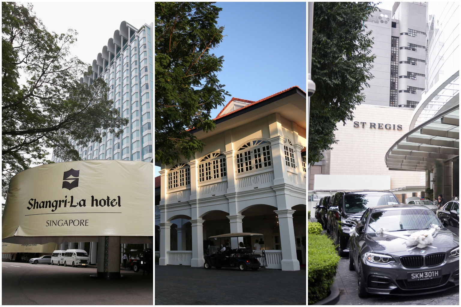 (From left) The Shangri-La Hotel, the Capella Singapore and The St Regis, hotels that will be under the spotlight during the Singapore Summit on June 12.