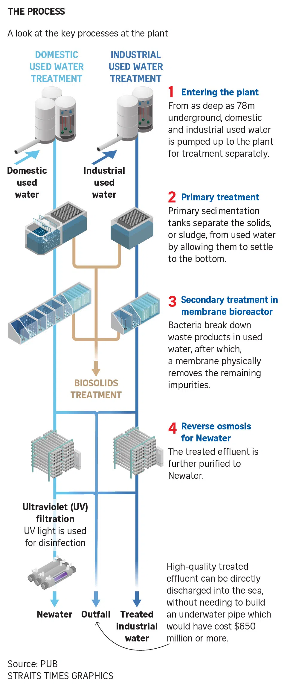 With the currently operational water reclamation plants in Changi and Kranji, a total of 1.97 million cubic m of used water can be treated each day from 2026, as a start.
