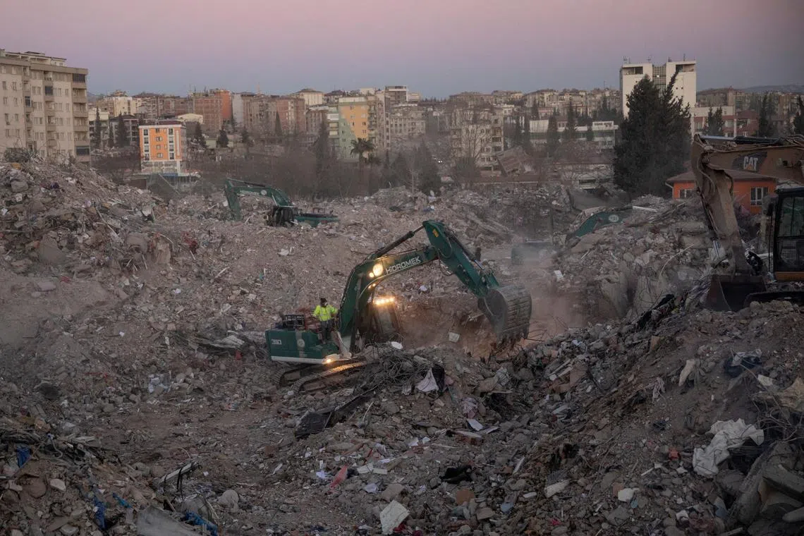 An excavator moving debris from destroyed properties in Kahramanmaras, Turkey, on Feb 16, 2023. The city was one of the worst hit by the earthquakes.