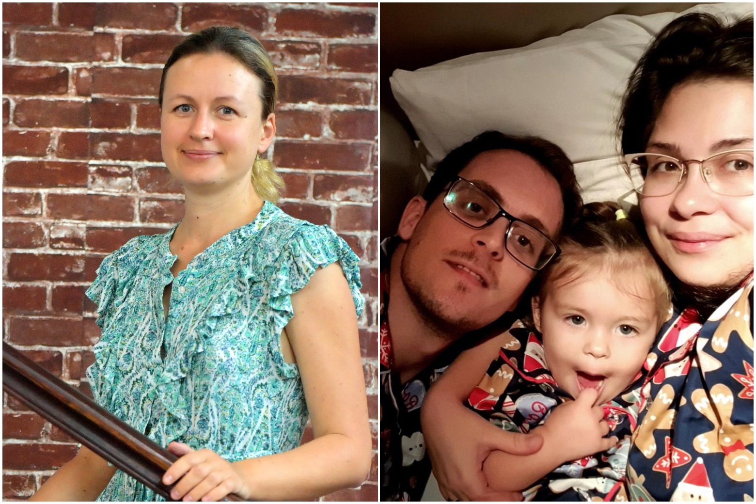 Ms Yulia Marishchuk (left) and Ms Maria Kropyvianska (right) with her family.
