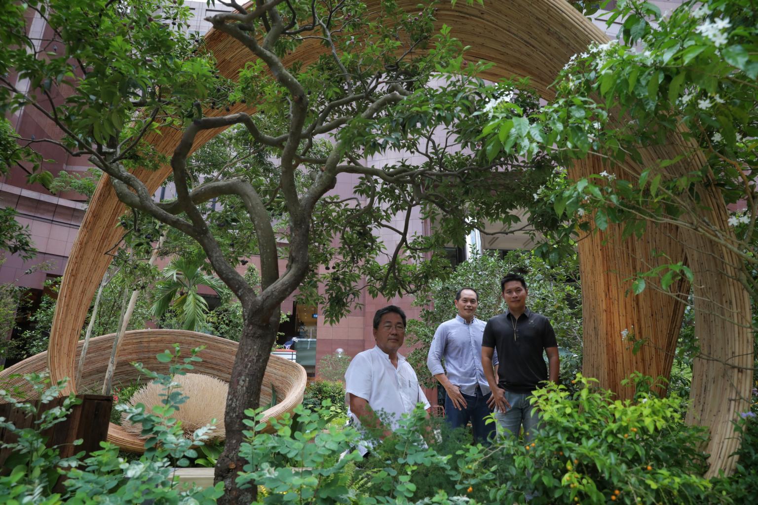 (From left) Mr Eliam Eng, Mr Kenny Eng and Mr Andy Eng in their show garden at the Singapore Garden Festival, on July 29, 2022.