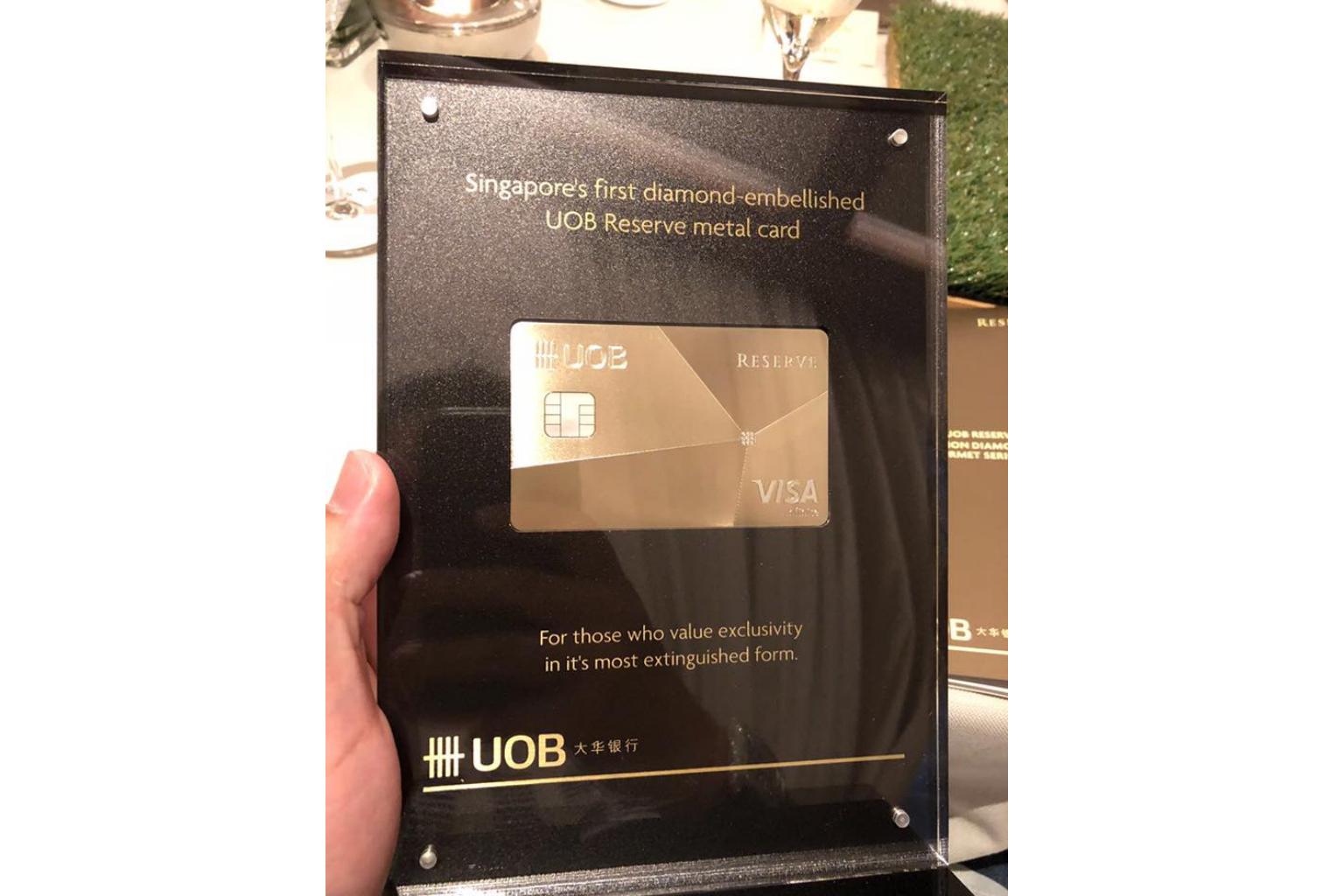 The plaque proclaimed that the UOB Reserve metal card was "for those who value exclusivity in it's most extinguished form".