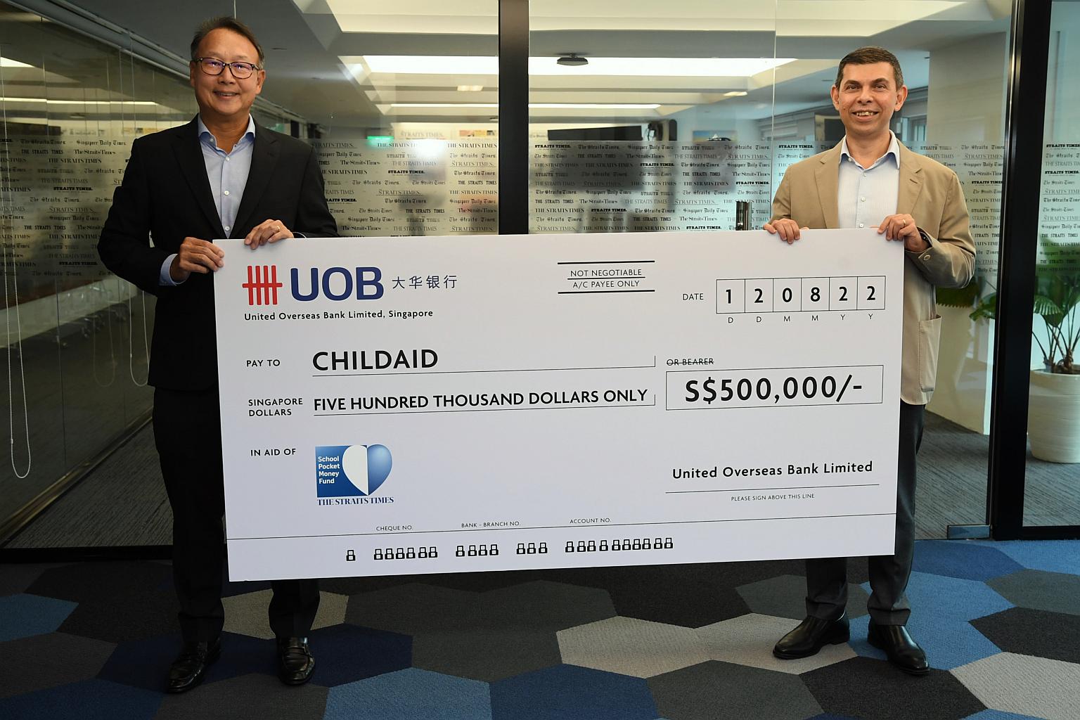 SINGAPORE - UOB donated $500,000 to The Straits Times School Pocket Money Fund (STSPMF) on Friday (Aug 12).