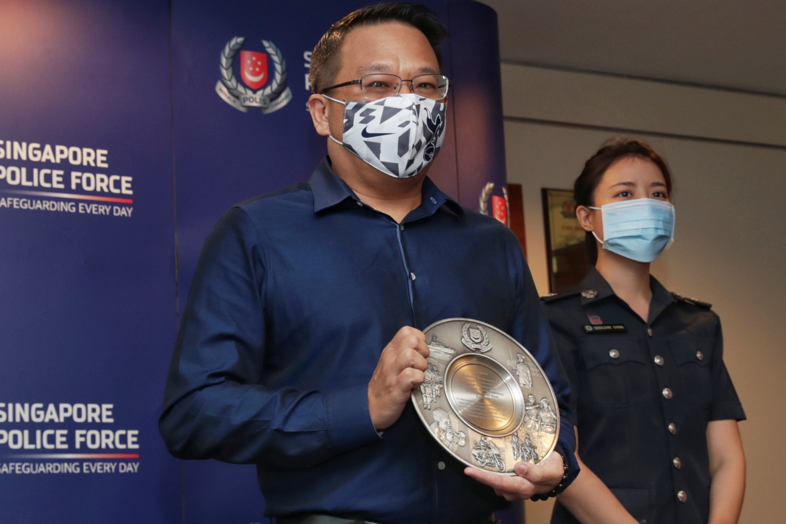 Mr Richard Soh, head of investigations at UOB's Integrated Fraud Management Unit, with the Community Partnership Award last October. The award was given by the police to UOB after the bank recovered $6.69 million involved in a business e-mail impersonation scam last year.