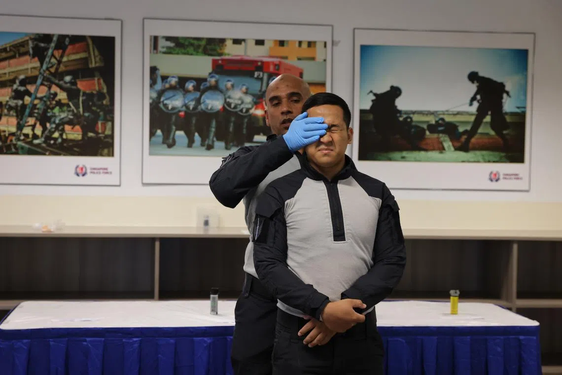 Deputy Assistant Commissioner (DAC) Yong Wei Jun, assistant director of the specialist capabilities and doctrines department, said this swiping technique reduces the risk of contaminating others nearby.