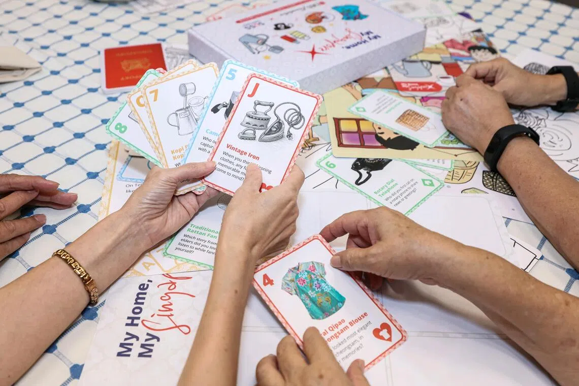 At the booth, seniors tried My Home, My Singapore, a card game featuring nostalgic local items that spark memory-sharing.
