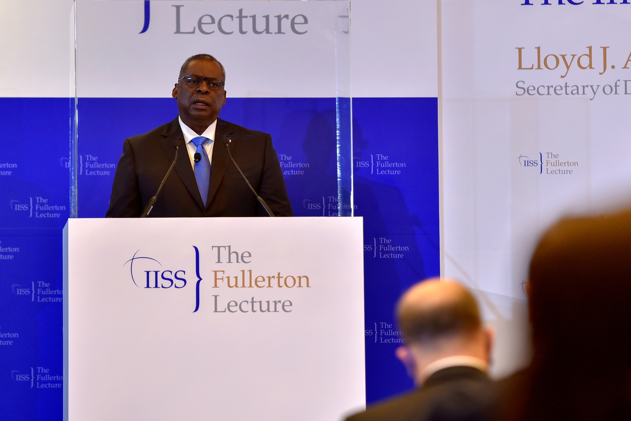 US Defence Secretary Lloyd Austin speaks at the 40th International Institute for Strategic Studies Fullerton Lecture in Singapore, on July 27, 2021.