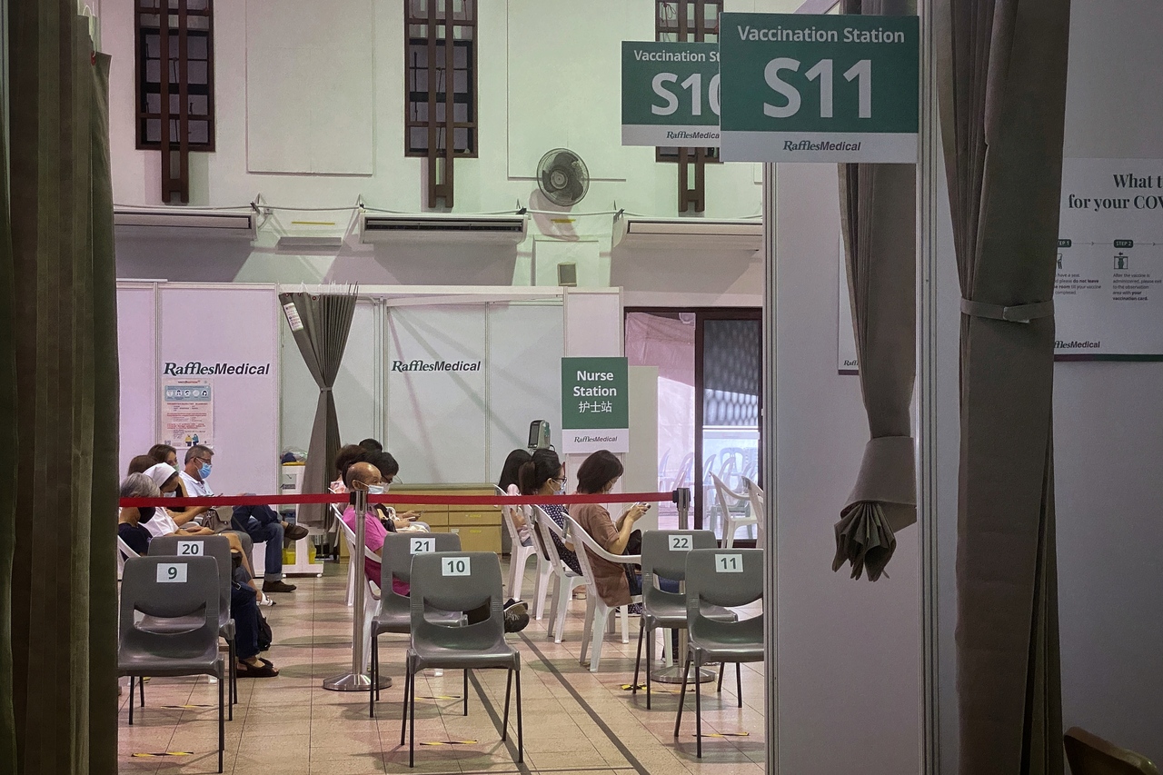 People waiting at the Covid-19 vaccination centre at Tanjong Pagar Community Club on Oct 12, 2021.