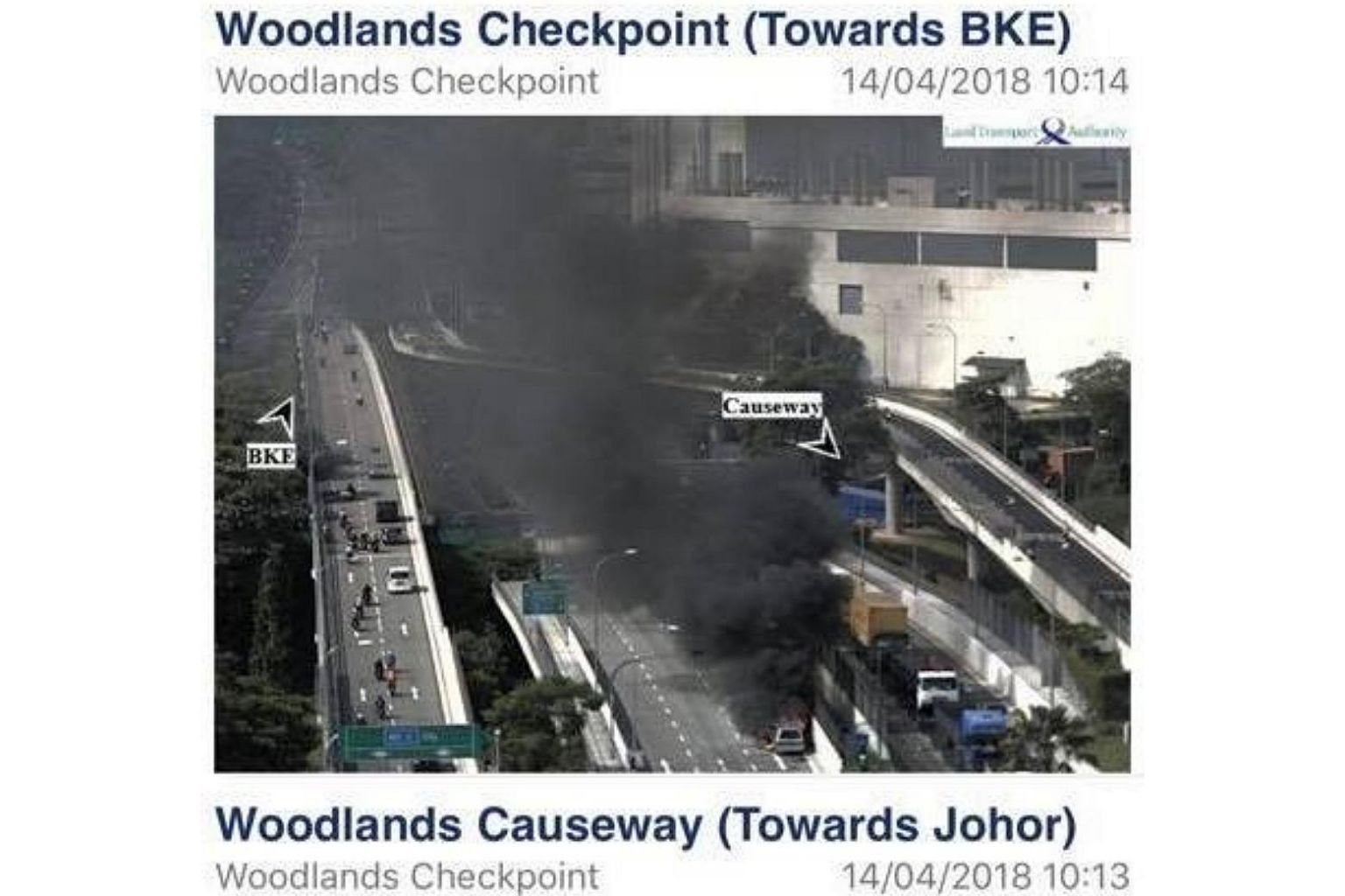 In a statement on Facebook, the Immigration and Checkpoints Authority (ICA) said a van caught fire on the bridge towards BKE at about 10am.