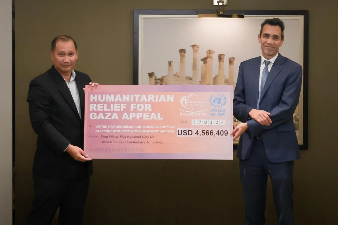 The funds are part of a record $8.1 million raised by Singapore charity Rahmatan Lil Alamin Foundation (RLAF) in late 2023 to provide relief and shelter to communities in the embattled Palestinian enclave.