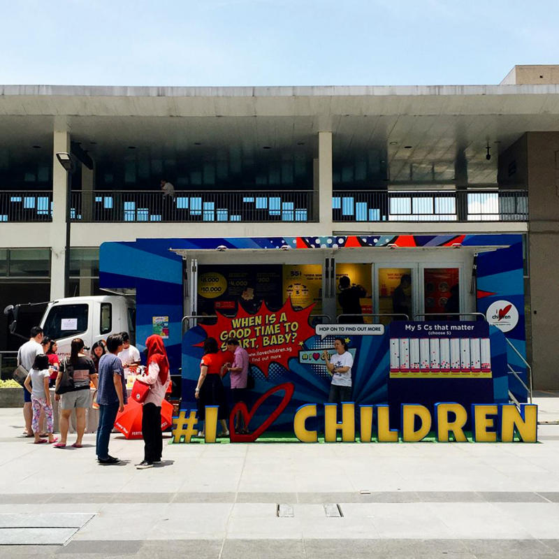 Voluntary welfare organisation I Love Children's Truck-on-the-Go, which educates visitors on fertility, finances and work-life matters, at Hillion Mall on Sept 29, 2018.