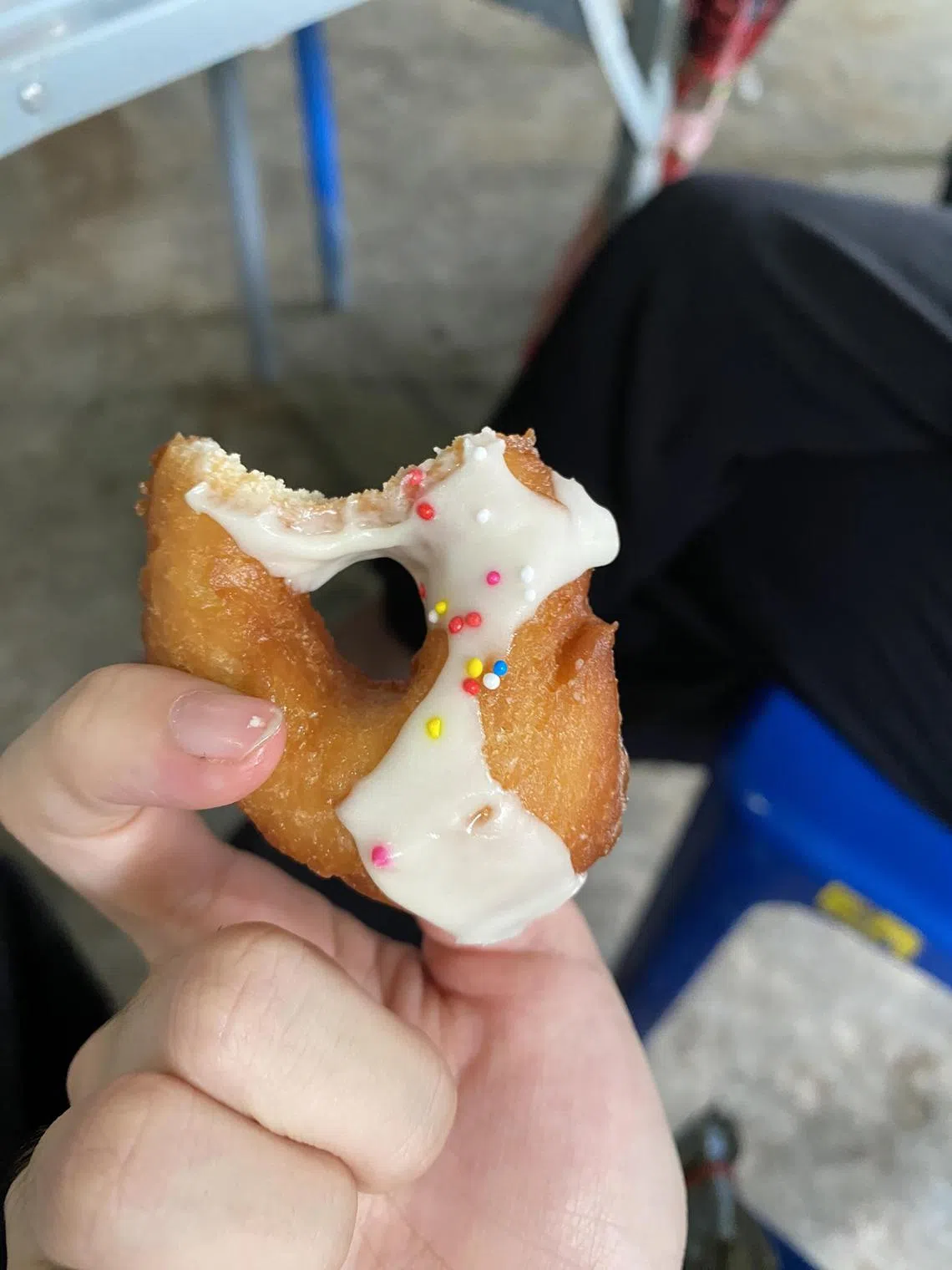 Afterwards, he told us, “I make these mini donuts to sell to my students.” He opened this big container and there were these small plastic tubs of donuts with glaze and sprinkles. Why is this teacher making these cute donuts to sell to his students? It’s to supplement his income because he’s the oldest of six siblings.