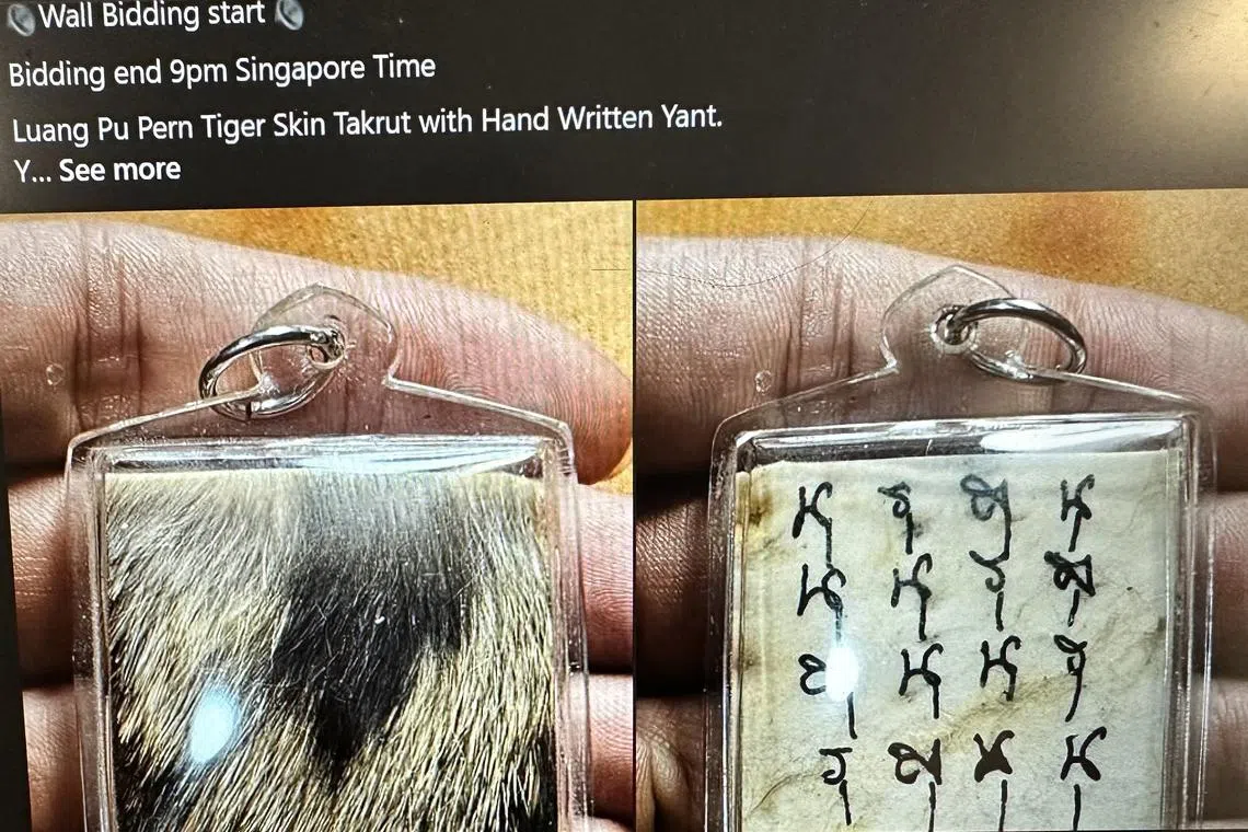 In the past two weeks, ST found amulets, which purportedly contain tiger skin, being advertised on Facebook for Singapore collectors.