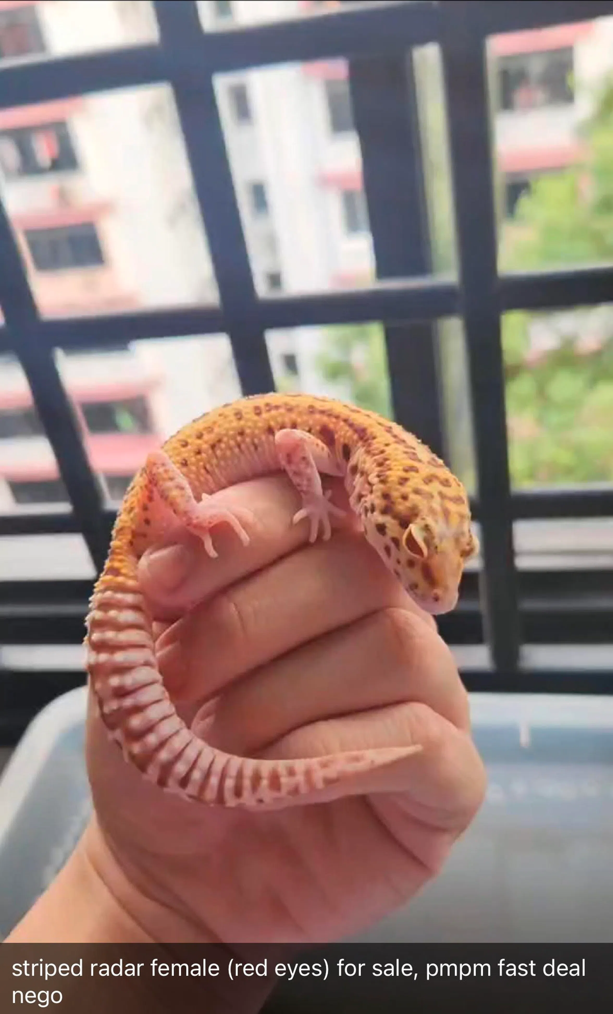 A gecko, which is non-native to Singapore, photographed against a background which looks like a Housing Board estate.