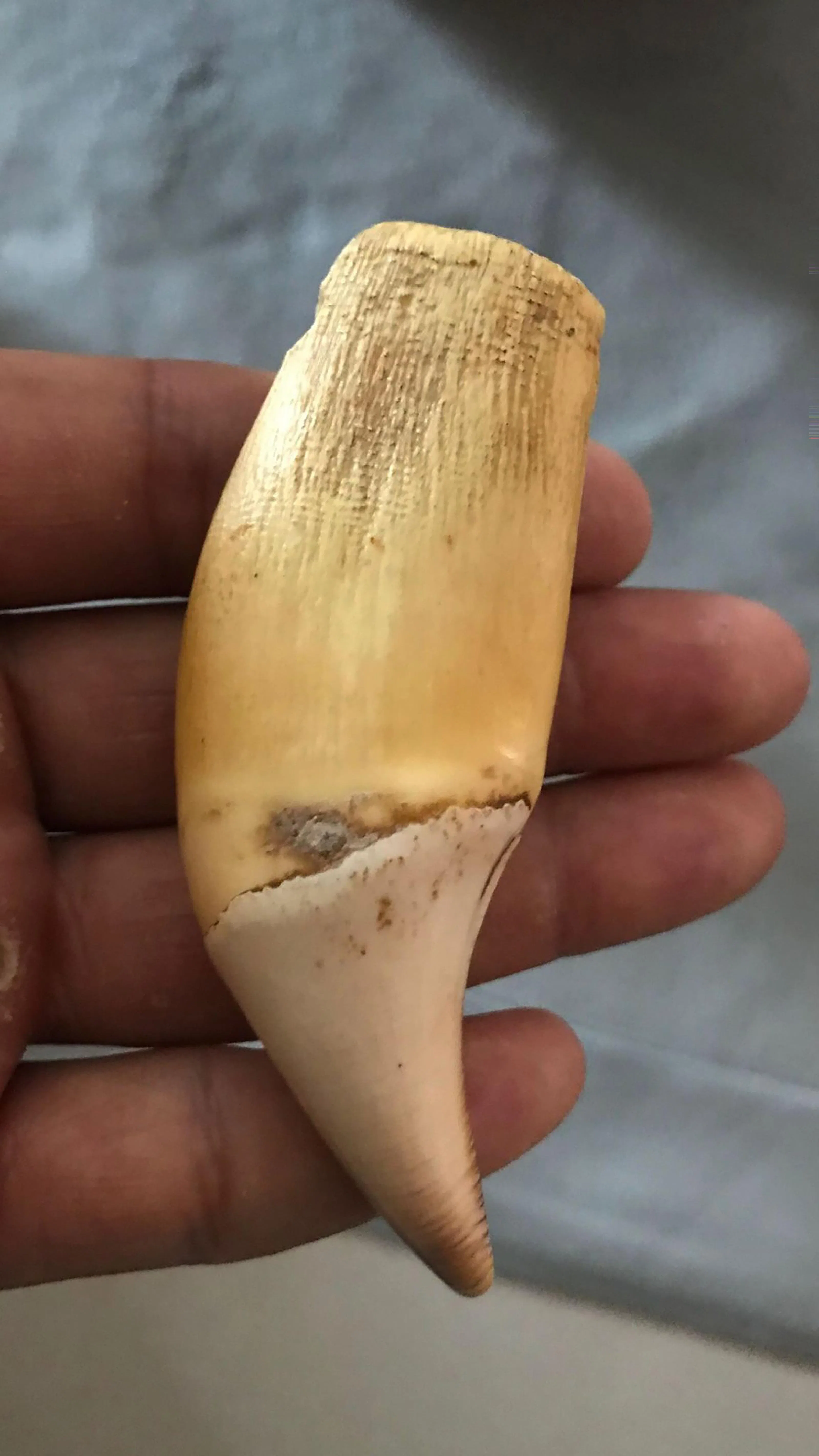 Photo of a bear tooth, as claimed by a man who has recently been active on WhatsApp. The man also posts items such as tiger claws, skin and teeth for sale.