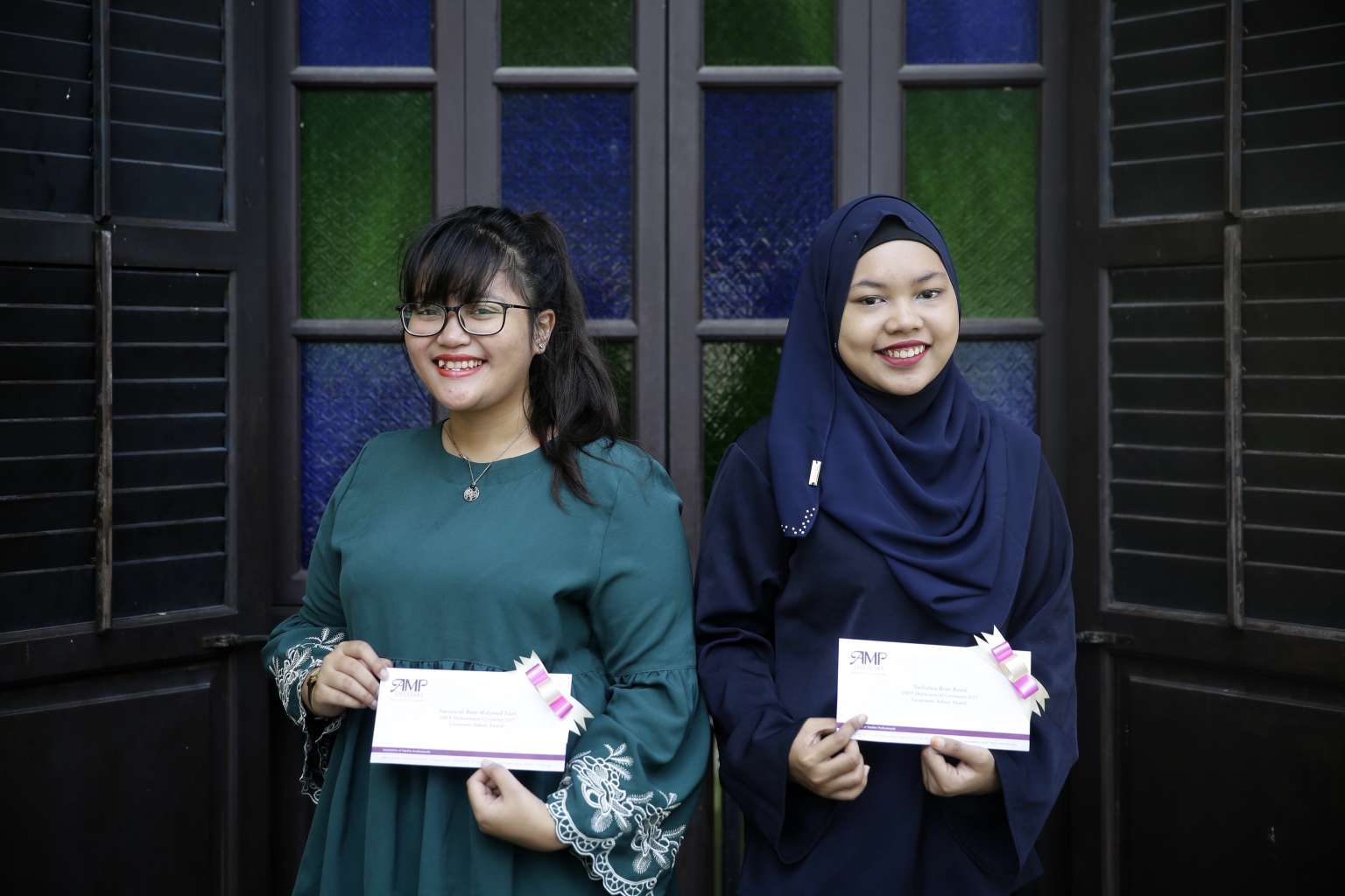 Lieutenant Adnan Award recipients Nursriwati Mohamed Yusri (left), 19, and Nurhaliza Ramli (right), 19.