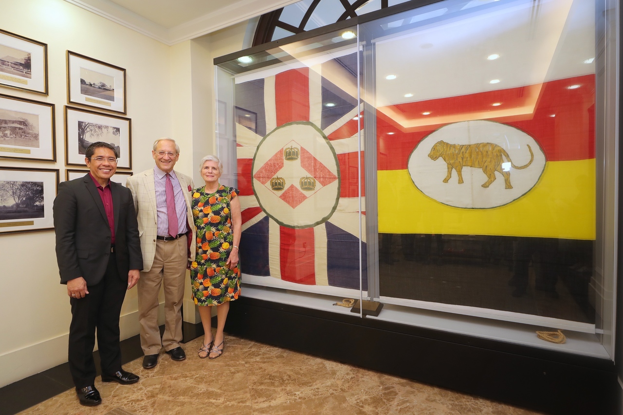 Today, the two flags are on display in glass casings, witnesses to the vagaries of colonialism and war. The Union flag of the then-Governor of the Straits Settlements which included Singapore, Penang and Malacca, territories represented by three imperial crowns set at the centre of the Union Jack.