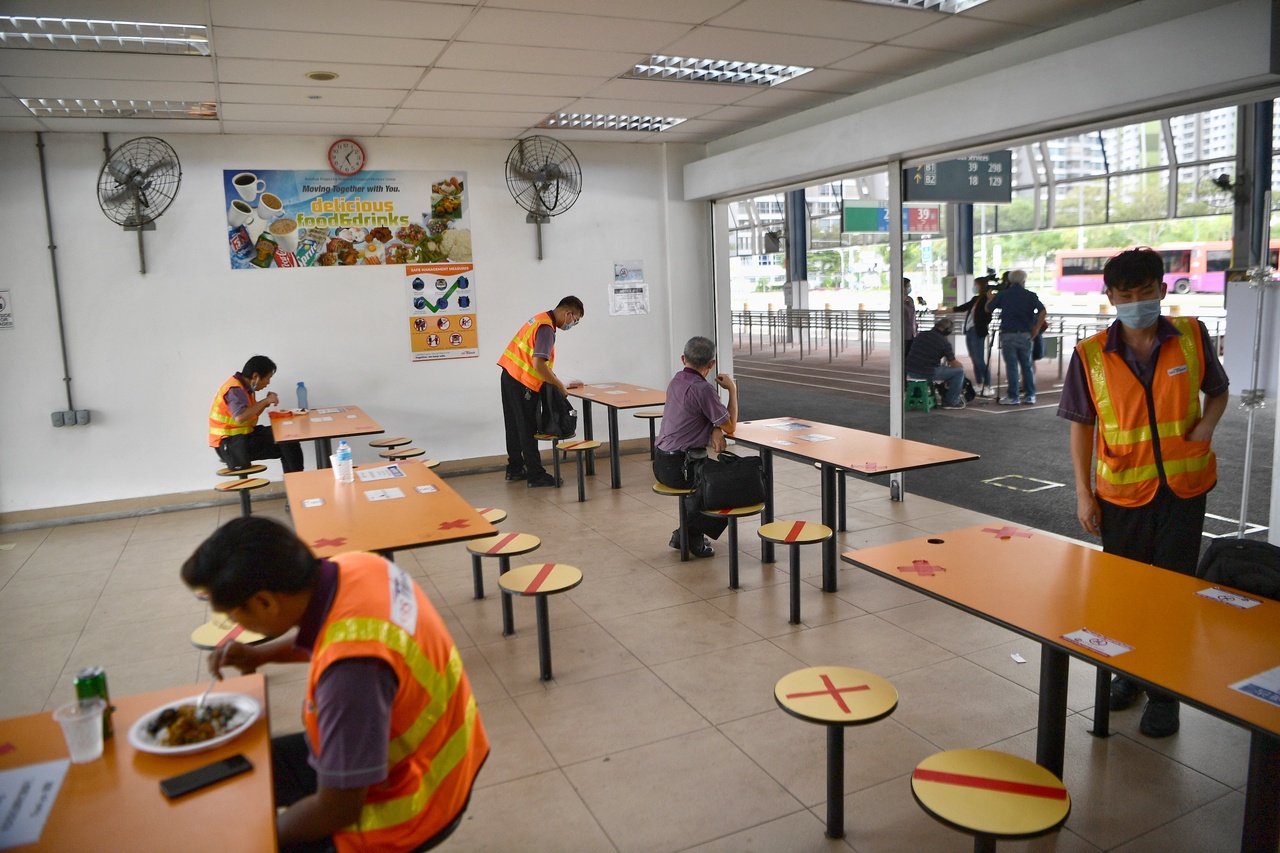 SINGAPORE - Staff resting and dining areas in all public bus interchanges have been segregated, with only one staff member allowed to sit at each table to dine, as part of a range of new measures to minimise Covid-19 spread at these places.
