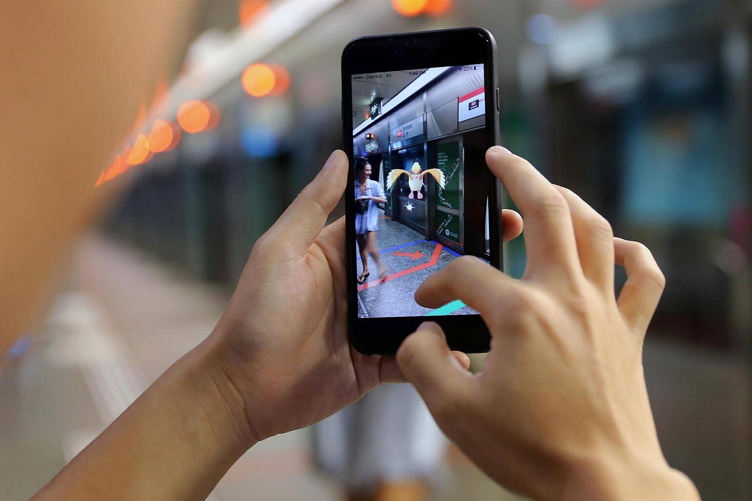 Pokemon Go player, trying to catch a pokemon at Orchard MRT station.