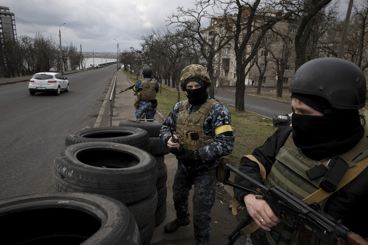 Ukrainian security forces in Mykolaiv, Ukraine, on March 4, 2022.