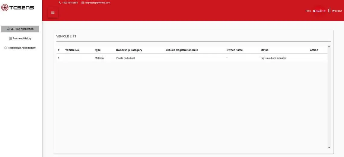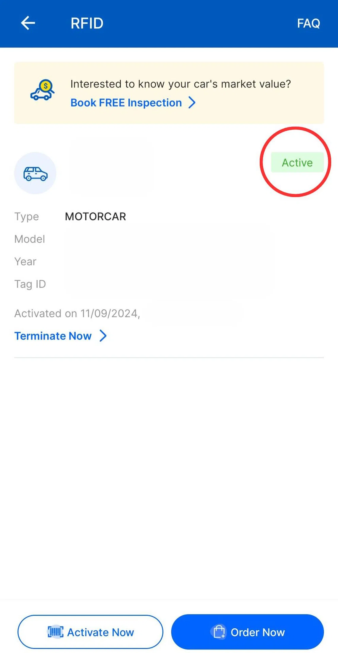 If “Active” is displayed near the top right corner of this page, your VEP is linked to your Touch ’n Go account.