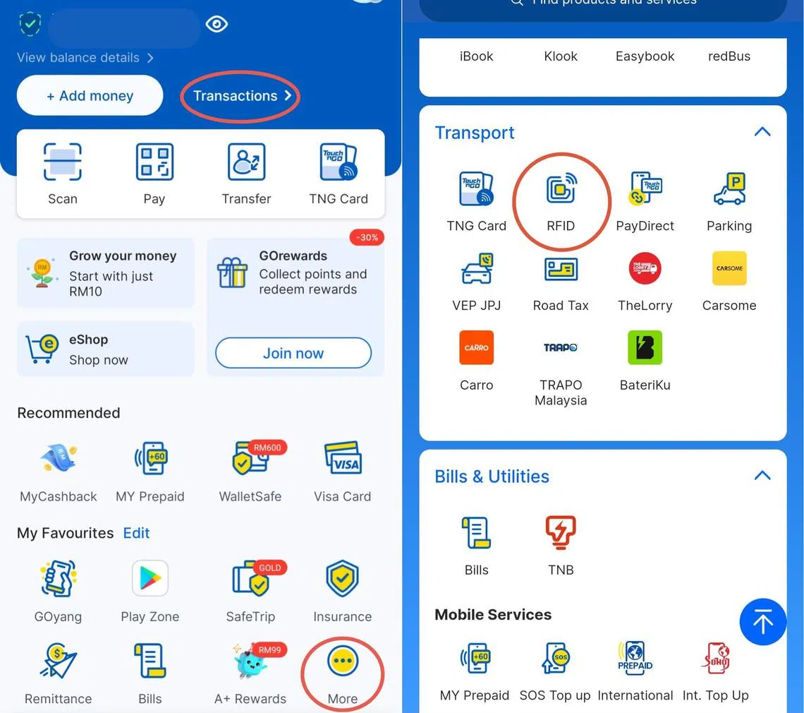 To check if the two are linked, you can click on the “More” tab in the Touch ’n Go app, and then “RFID” under the Transport section.