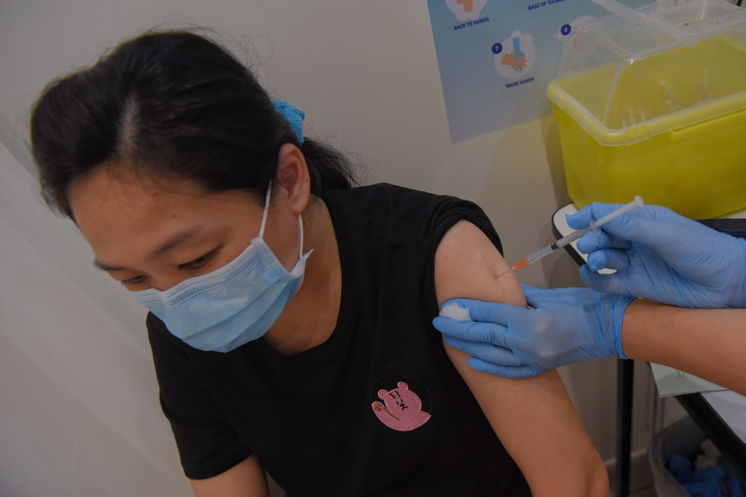 A woman getting a dose of the Moderna vaccine at Yew Tee Community Club last month. Three independent bodies of medical experts in Singapore have reiterated that the risk of heart conditions associated with the Covid-19 mRNA vaccine is ''very small'', and have recommended that people still get the vaccines in the interest of public health.