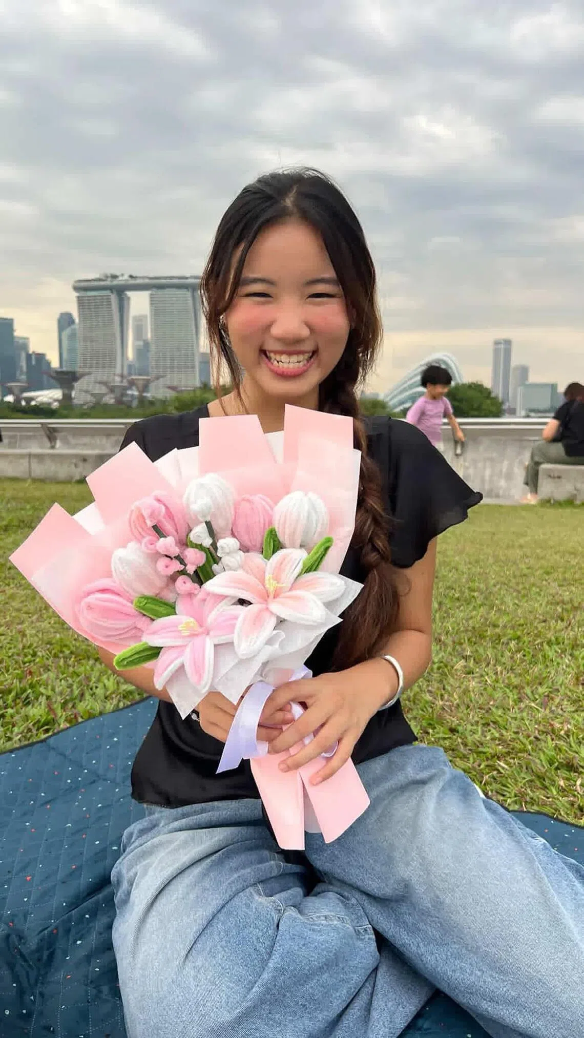 “On my birthday, my boyfriend surprised me with handmade pipe cleaner flowers and a picnic to see the lights at MBS. It was super cute. He carried everything even though it was very heavy.” — Ms Melody Wee, 18, Nanyang Polytechnic