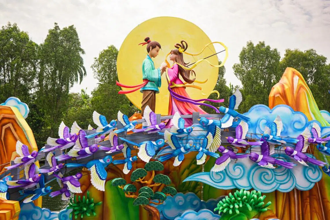“Magpie Bridge”, a lantern set which floats on water at Gardens by the Bay, draws inspiration from the love story of the cowherd and weaver girl.