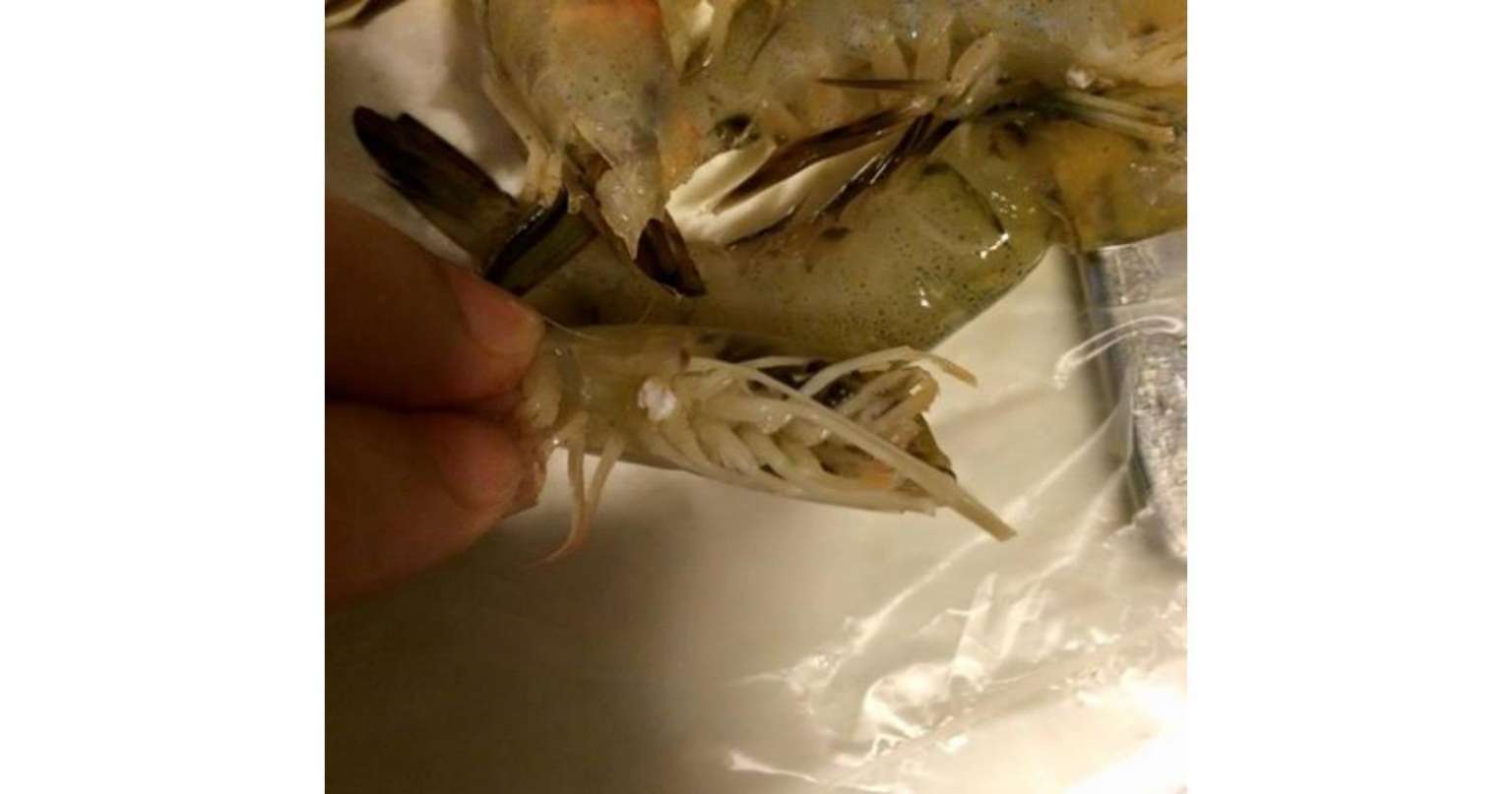 They were captioned with a reply from the AVA: "The whitish material is caused by the infection of white spot disease. This is a viral disease which attacked the shrimp. You may wish to discard the shrimp away."