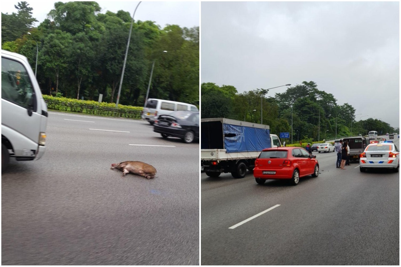Earlier in September, there were two accidents involving a wild boar in two days. The first on Sept 28 saw a wild boar cause a traffic accident on the Ayer Rajah Expressway that sent two people on a motorcycle to hospital.