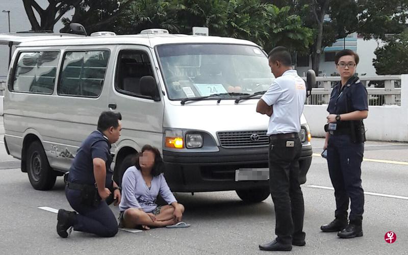 Seated on Bendemeer Road at around 7.30am, the woman held up both arms to block the van, according to a report by Shin Min Daily News.