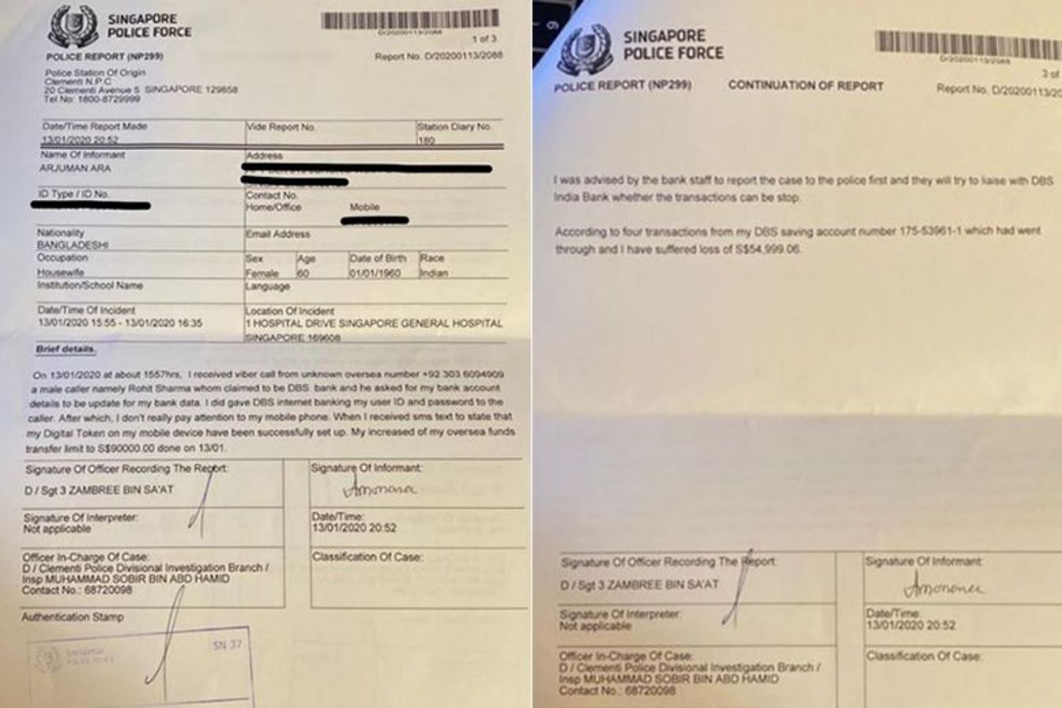 The woman had provided the caller, who claimed to be from DBS Bank, with her bank card number and iBanking PIN.