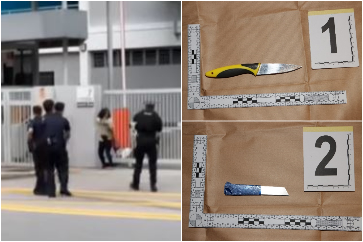 At about 6.30pm on Monday, the police received a call for assistance regarding a woman who was allegedly waving a knife along Tampines Street 82.