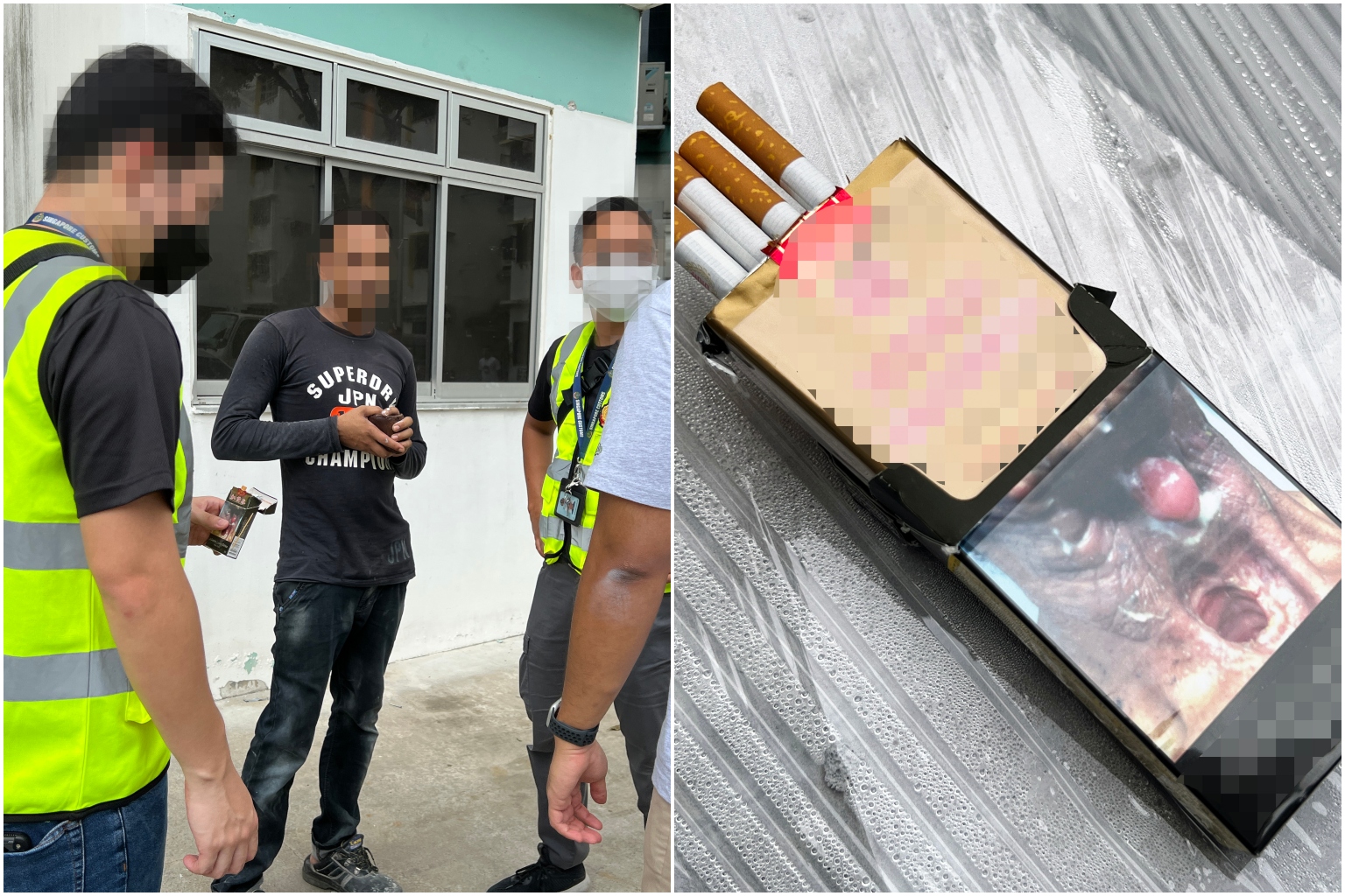 The Bangladeshi national, 33, had hidden his pack of illegal cigarettes within an empty duty-paid one when Customs officers caught him smoking one at an Housing Board block.