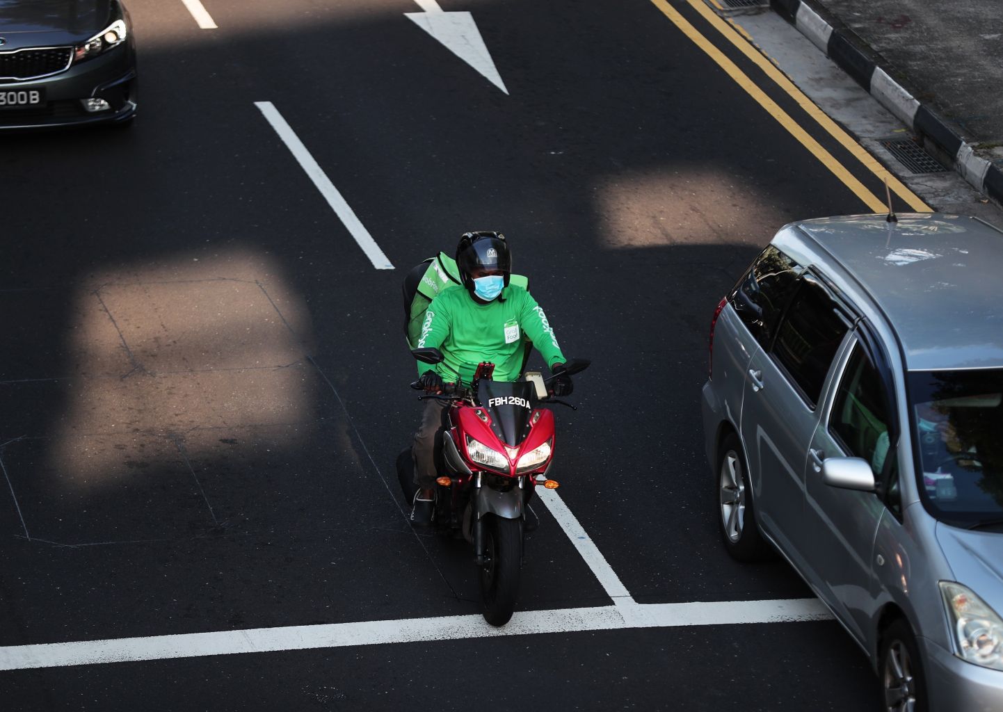 A Grab delivery rider wearing a mask goes about his business in Toa Payoh on April 15, 2020.