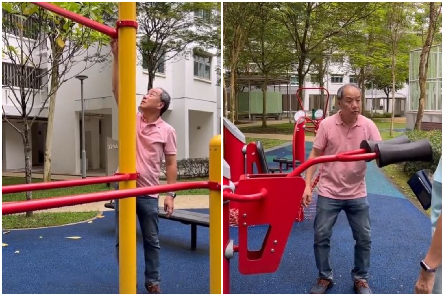 A 40-second video shows Mr Low in Sengkang, where he is helping out while Sengkang GRC MP Jamus Lim is on a fellowship in the United States. Mr Low, 65, is seen checking out the facilities of a playground in Anchorvale estate, rocking several pieces of equipment to make sure they are safely secured.