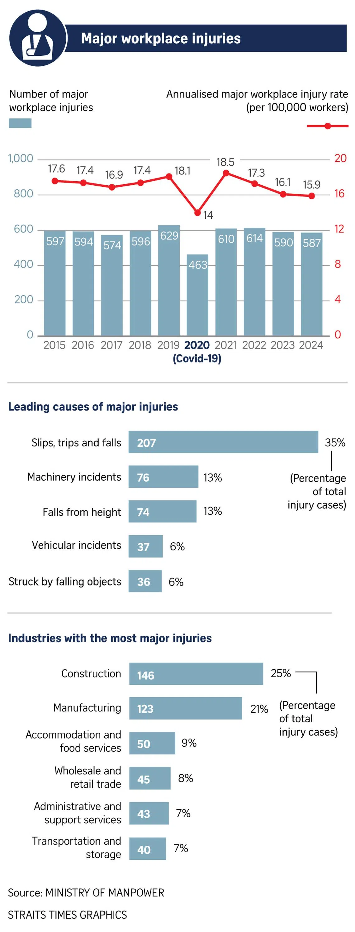But MOM noted that there were improvements in the number of major injuries in the construction sector in 2024, with a 2 per cent decrease from the figure in 2023.