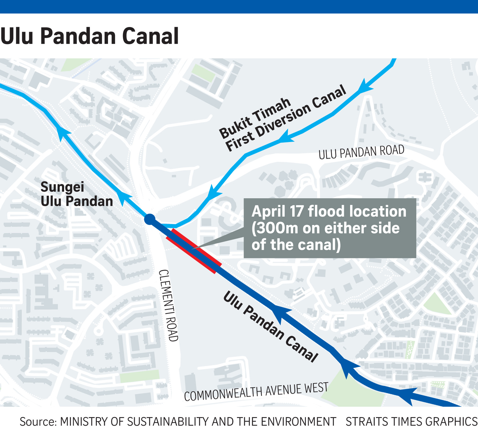 While acknowledging that flash floods occurred at the 300m-long stretch along Ulu Pandan Canal, Ms Fu noted that major roads in the area, which is served by the canal, like Clementi Road, Clementi Avenue 6, Commonwealth Avenue West and Ayer Rajah Expressway were not flooded.