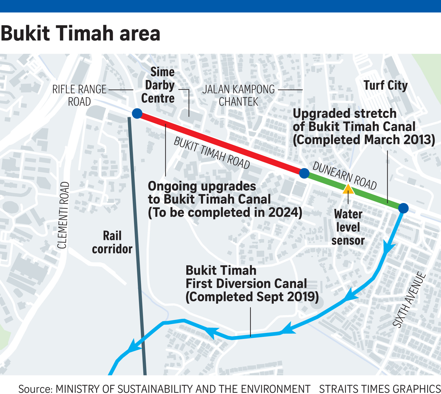 Upgrading works for the section of Bukit Timah Canal between Rifle Range Road and Jalan Kampong Chantek, where flash floods occurred on April 17, are under way and will be completed in 2024.